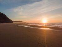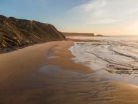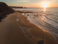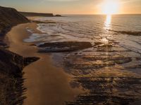 Experience the breathtaking beauty of Portugal's coastline. From a high position, the aerial views reveal expansive beaches, clear skies, and the shimmering ocean. The sun casts a warm glow over the sand, creating an inviting landscape that epitomizes Europe's coastal charm. Open spaces and the water's surface stretch into the horizon, offering a serene and picturesque setting.