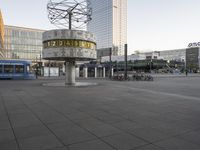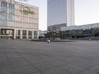 The break of day reveals the modern architecture of the Alexanderplatz located in the metropolitan area of Berlin, Germany. The area features a vibrant mix of high-rise buildings, public spaces, roads, open plazas, and a variety of urban transport methods. Tourists and locals alike can be seen admiring the impressive skyscrapers, office buildings, shops, and storefronts, all surrounded by a concrete floor, surface, and curb.