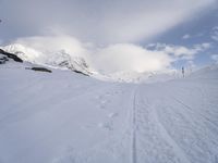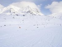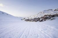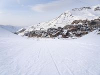 A beautiful winter day in the French Alps, with a view of a nunatak, ski piste, and glacial valley, framed by a clear blue sky.