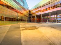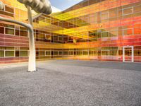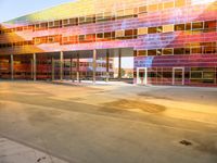 A view of a city street in Amsterdam, Netherlands, featuring a combination of brick, concrete, and metal materials. A mix of high-rise buildings, residential areas, and public spaces can be seen, with yellow and orange hues giving the scene a warm, sunny atmosphere.