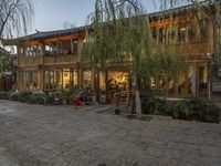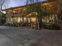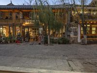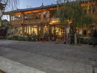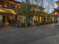 The alley-ways of Lijiang, China, in the evening, lit up by artificial light and showcasing its classic architecture. Lijiang is a city in the Yunnan province, known as Shangri-La and a popular tourist attraction.