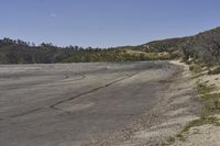 Angel Crest Highway, a thoroughfare located in California, USA, is seen here with a combination of asphalt and dirt roads surrounded by a diverse landscape of mountain landforms, grass, trees, and ocean views. The elevation of the highway offers a panoramic view of the natural environment and its varied vegetation in all seasons.