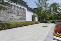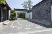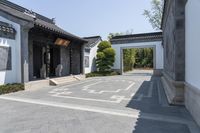 A stunning residential building in the heart of Shanghai, China, showcasing classic architecture and a beautiful courtyard surrounded by lush vegetation.