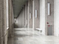 A stunning interior design of a building in Munich, Germany, featuring a straight down the road view. The symmetrical layout, white walls, and wooden flooring create a seamless and elegant space. The glass columns and ceiling add a touch of modernity to the classic architecture. This property in Bayern showcases the perfect blend of traditional and contemporary elements.