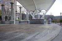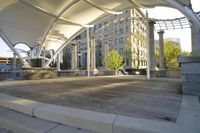 A sunny day in Asheville, North Carolina showcasing the beautiful architecture and cityscape with arches, columns, and windows.