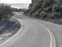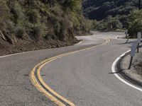 An aerial view of the Armco barrier along the Pacific Coast Highway in California. The curved S-curve highway winds through the chaparral biome, with a backdrop of the coastal mountain range, a fault line, and a clear sky. Automobiles can be seen passing along the highway, surrounded by the desert landscape, grassy hills, and lush vegetation.