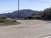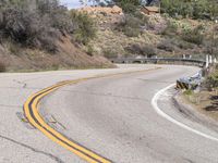 An aerial view of the S-curve Armco barrier along the Pacific Coast Highway in California, USA. The afternoon sunlight highlights the winding asphalt road, chaparral biome, and mountain formations as it passes through the lowland grass and woody plants of the desert.