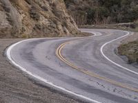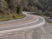 An aerial view of the Armco barrier along a winding S-curve of the Pacific Coast Highway in California, USA, surrounded by chaparral biome, grass and succulent plants, and a lush mountain backdrop along the horizon. Automobiles line the ocean-side road with a clear sky afterglow and golden sunshine highlighting the sand street and rock formations.