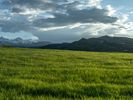 In the heart of Colorado, Aspen's rural landscape unfolds with lush greenery and mountainous backdrops. Roads stretch straight down the countryside, casting long shadows at dawn. The scenic drive offers views of croplands and farm fields, with agriculture blending seamlessly into nature. Clouds play against the mountain profiles, creating a picturesque scene of the break of day in the USA.