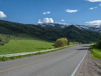 Located in the picturesque landscapes of Aspen, Colorado, lush greenery and majestic mountains surround the asphalt roads. Clouds drift lazily overhead on this perfect day, adding to the serene atmosphere. The rural roads wind through one-quarter of the USA's most stunning nature, offering a glimpse of the beautiful scenery that defines Aspen's charm.