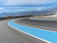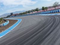 A race car driver navigates a curve on an asphalt road on a sunny day in the USA.