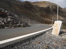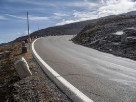 A winding switchback road overlooks an elevated mountain landscape in sunny Austria, Europe, providing an open view of the clear sky and sun-drenched nature below.