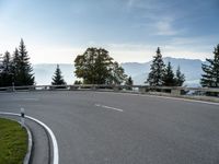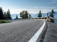 A road winding through the highlands of Austria, surrounded by trees and vegetation on a clear day. The tar road surface curves between the mountain landforms, providing a unique look into the natural environment and infrastructure of Europe.