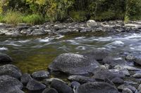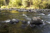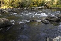 A scenic view of the Taylor River flowing through the colorful autumn landscape of Crested Butte, Colorado, USA.