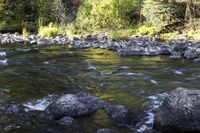 Scenic view of the Taylor River flowing through the riparian zone in Almont, Colorado, surrounded by vibrant autumn-colored trees and lush vegetation.