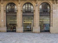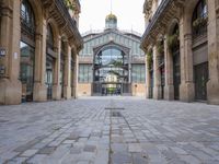 A straight view down the road in Barcelona, Spain, showcasing the city's classic architecture and vibrant urban life.