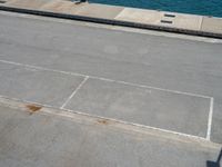 From a high position, the aerial view of Barcelona's coastline reveals an elevated road that stretches out towards the clear sky. The road leads to a pier, offering a picturesque landing spot for boats and a panoramic view of the ocean. The coastal city of Barcelona, Spain, boasts a vibrant harbor and a stunning coastline. The top-down perspective captures the beauty of the city's profile as it meets the water, creating a captivating scene that showcases the unique charm of Barcelona.
