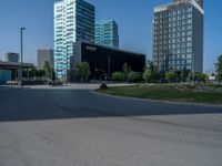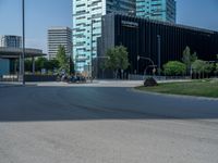 In the heart of Barcelona's bustling business district, modern architecture and urban design take center stage. The city's vibrant energy is palpable as people go about their day on the busy roads and roundabouts. The clear skies cast hard shadows, creating a striking contrast against the sleek office buildings and urban landscape. Barcelona's unique blend of old and new is evident in its architectural style, with a mix of classic and modern designs. This dynamic city is a true reflection of the vibrant European city life.