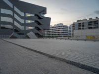 the building is very modern and large and has many square windows and is clad in grey tiles