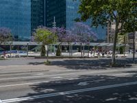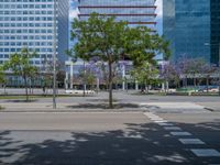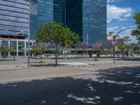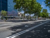 In the heart of Barcelona's bustling business district, modern architecture and urban design create a vibrant cityscape. The streets are lined with sleek office buildings and the roads are paved with smooth asphalt. The city's unique profile is accentuated by the hard shadows cast by the buildings and the traffic lights that dot the landscape. As the sun shines down, the shadows create a dynamic interplay of light and dark, adding to the energy of the city. Barcelona's city life is on full display, making it a captivating destination in Europe.