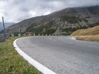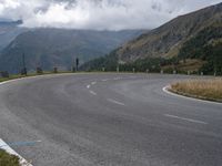 Aerial view of the Armco barrier, guard rail, and road leading into the curves of the open countryside in Austria, Europe. The mountains, nature, and landscape provide an elevated, overlook, and overview of the rural asphalt switchback high and low in the foreground of the bright sunny day.