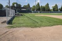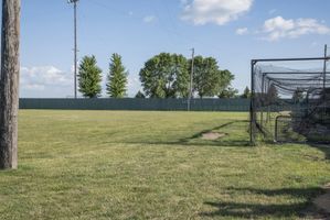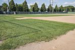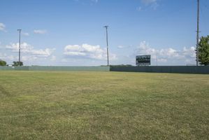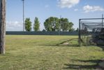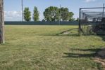 A picturesque baseball field in Bancroft, Iowa, with lush green grass surface under a clear sky. The open space and beautiful landscape make it perfect for recreational activities and team sports.