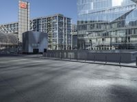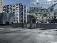 The bustling streets of Berlin, Germany, are filled with modern architecture, glass walls, and Brutalist facades. Seen here is a road illuminated by sunlight, with a reflection of the city skyline in its asphalt surface. This metropolitan area is filled with trees, metal, concrete, and high-rise buildings, making it the perfect place for business and city life.