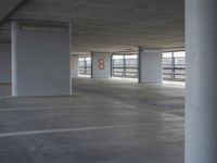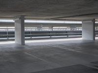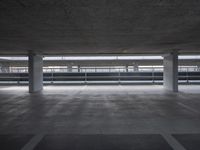 A view of the Berlin skyline from the top of a parking deck. The parking deck is made of concrete and steel and features a composite material flooring with a guard rail running straight down the road. The metropolitan area is visible in the background.