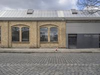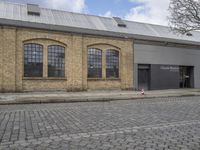 Symmetric brickwork and cobble stone roads give a classic feel to the cityscape of Berlin, Germany in Europe, with doors, windows, trees, and fixtures making up the landscape of the public space and residential area.