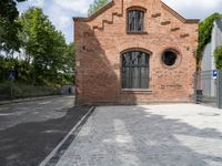 A profile view of the classic architecture of the business district in Berlin, Germany, featuring cobble stone surfaces, open spaces, modern office buildings, and museums against a backdrop of clouds on a sunny day.