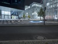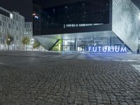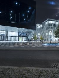 A view of the skyline of Berlin, Germany featuring modern architecture, corporate headquarters, and skyscrapers illuminated by artificial light. The metropolitan area is home to many businesses and features futuristic design, infrastructure, and open spaces.