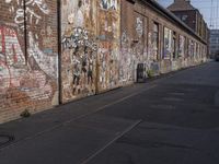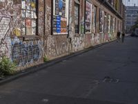 A view of the city architecture in Berlin, Germany. The image showcases a neighborhood with buildings, facades, windows, and wood flooring. The urban design and industrial feel of the area is enhanced by graffiti walls and warehouses.
