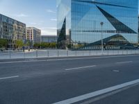 The sun visible at the break of day casts a warm glow on the modern architecture of the financial district in Berlin, Germany, showing the vibrant city life of this European urban center.