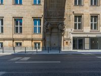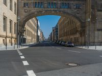 Experience the vibrant city life of Berlin in the heart of Europe and Germany. Classic architecture lines the roads, bridges, and underpasses, casting dramatic shadows under the clear sky. Urban design intertwines with the city's profile, showcasing both classic and modern structures. Walk straight down the road to discover open spaces, asphalt pathways, and intricate architectural details that paint a picture of Berlin's rich history and dynamic urban landscape.