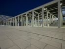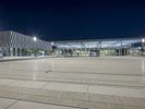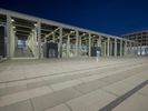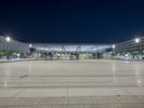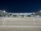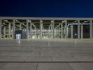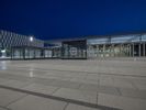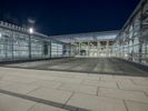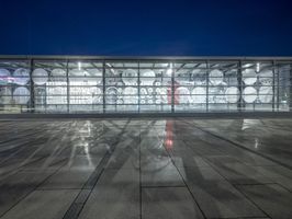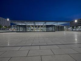 The illuminated urban nightscape of Berlin, Germany is a blend of modern architecture, concrete, open space plazas, courtyards, asphalt, and dark Hinterhofs. The clear sky and artificial light creates an illuminated surface of the European city, perfect for a packshot.