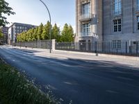The classic architecture of Berlin, Germany can be seen in the city's buildings, homes, and public spaces. The urban skyline in the background is home to a variety of business offices, hotels, and modern architecture. On a sunny day, the blue sky and trees line the city's streets and create a vibrant atmosphere.