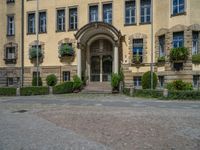 Located in the heart of Berlin, Europe, this museum showcases classic architecture against a backdrop of urban landscapes. Cobblestone and gravel surfaces lead visitors through open spaces, casting shadows that create a play of light and dark. The profile of the building stands out against the sky, with clouds drifting overhead. Explore the one-quarter of the museum's exterior, where dirt and sand areas add a unique texture to the surroundings.