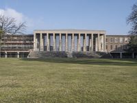A classic cityscape of Berlin, Germany, showcasing the urban design of its residential areas, public spaces, and European architecture. With clear skies, vegetation, and a grassy lawn, it is a popular tourist attraction and home to some of the oldest universities in Europe.
