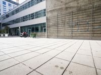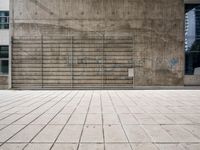 A daytime view of the architecture of Berlin, Germany, featuring tile, concrete, asphalt, stone walls, public spaces, glass, brickwork, and more. The urban design of Europe's largest city is visible in the corporate headquarters, parking garages, condominiums, residential areas, and walkways.