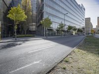 The dawn sunshine casts a long shadow as it illuminates the modern architecture of Berlin's metropolitan business district, highlighting the diverse infrastructure of the German city.