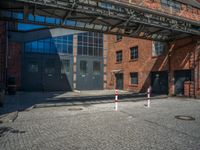 In the heart of Berlin, classic architecture stands tall under the European sky. Cobblestone streets lead past storerooms and warehouses, casting shadows on the city's urban landscape. The blend of old and new designs creates a unique atmosphere, with vegetation adding a touch of green to the urban scene. From historic factories to modern depots, Berlin's urban design is a testament to its rich architectural heritage.