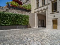 In the heart of Berlin, residential areas intertwine with classic architecture under the European sky. Cobblestone roads lead through courtyards and Hinterhofs casting shadows in the open spaces. The urban design features charging stations for electric vehicles, blending modern infrastructure with historical brick walls. Clear skies illuminate the city, highlighting the mix of old and new in this vibrant European metropolis.