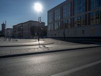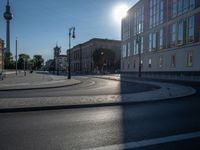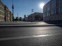 Immerse yourself in the vibrant city life of Berlin, where modern architecture and urban design intertwine under the European sun. The clear sky casts hard shadows on the asphalt roads, creating a striking contrast in this bustling German city. Explore the dynamic blend of old and new architecture against the backdrop of a sunny day, with the urban landscape showcasing a mix of traditional European charm and contemporary design.