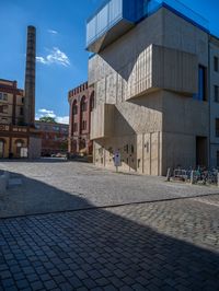 Immerse yourself in the vibrant city life of Berlin, where modern architecture and historic cobblestone streets intersect. The cityscape is adorned with courtyards and Hinterhofs, providing a glimpse into the European charm of Germany. Urban design is showcased through warehouses and storerooms, while vegetation adds a touch of green to the urban surroundings. Explore the city's architecture under the clear sky, where shadows play with the facades of buildings, creating a dynamic profile of Berlin's storied past and innovative present.