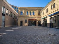 In the heart of Berlin, the bustling city life comes alive in the vibrant business district. Classic architecture meets modern office buildings, creating a unique blend of old and new. Cobblestone roads lead to courtyards and Hinterhofs, offering a glimpse of the city's history. The urban design showcases open spaces and lush vegetation, providing an oasis in the midst of the hustle and bustle. Warehouses and storage facilities stand as a testament to Berlin's industrial past, while the clear sky and hard shadows create a dynamic atmosphere. Explore the storerooms and discover the charm of this urban landscape.
