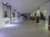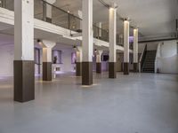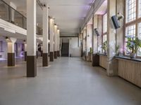 A view of Berlin, Germany, showcasing the city's unique urban design. From the concrete flooring to the columns and ceiling of the factory or warehouse, the city's industrial architecture and art district are highlighted in the foreground. Tourists and locals alike visit this vibrant venue for its museums, galleries, and tree-lined neighborhoods.