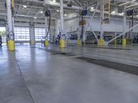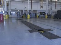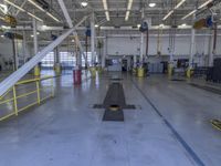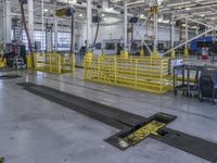 An elevated view of a bustling urban landscape in Los Angeles, California USA, featuring a mix of industrial buildings, warehouses, factories, workshops, race tracks, and parking garages with steel, metal, concrete, and paver surfaces. Automobile repair shops and aerospace engineering hangars also dot the landscape, highlighting the city's high-tech engineering and mass production capabilities.