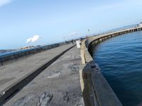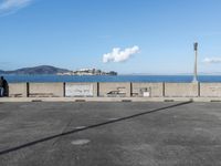 A birds-eye view of San Francisco, USA, reveals a coastal city of concrete and open space, with a pier and harbor jetty visible in the foreground. A clear sky and sunshine brings out the surface texture of the roads and a passing plane leaves a contrail in the sky. The Pacific Ocean is visible in the background.