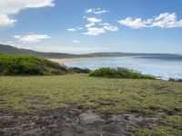 Scenic view of Bournda Headland, a highland cliff in Bournda National Park, New South Wales, Australia. The azure waters of the lake and watercourse contrast with the lush green vegetation and open grassy areas. A perfect destination for outdoor activities and recreational water sports.