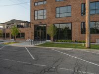 The early morning sun illuminates the asphalt road and office buildings of Salt Lake City, Utah in the USA, as the clear sky and clouds are seen in the one quarter profile.